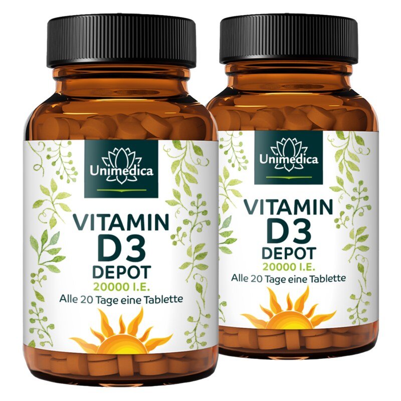 2er-Sparset: Vitamin D3 Depot 20.000 I.E. (Jeden 20.Tag 1 Tablette) - 2 x 120 Tabletten - von Unimedica