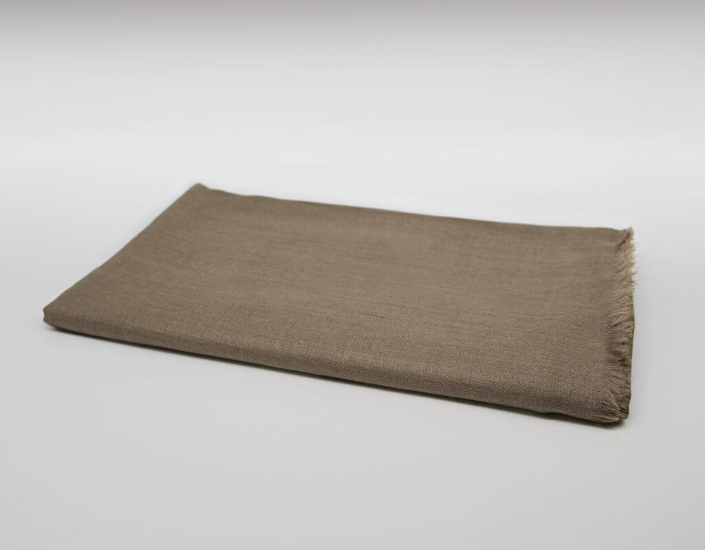 Wir beziehen die Wolle-Seiden-Decken direkt von einem kleinen Unternehmen aus der indischen Region Kaschmir. Dort werden seit über 50 Jahren Schals und Decken von erfahrenen Webern an einfachen Webstühlen hergestellt. Die Decken werden speziell für uns gefertigt. Sie sind 140x280cm groß, im hochwertigen Diamond-Weave (Webart).