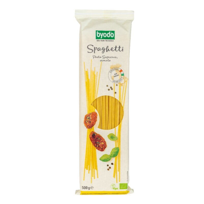 Spaghetti stehen sozusagen als Synonym für italienische Pasta. Diese Spaghetti sind zu 100% aus Bio-Hartweizengrieß aus Italien, in traditioneller Herstellung mit Bronze-Matrizen. Umweltbewusst in Papier verpackt.