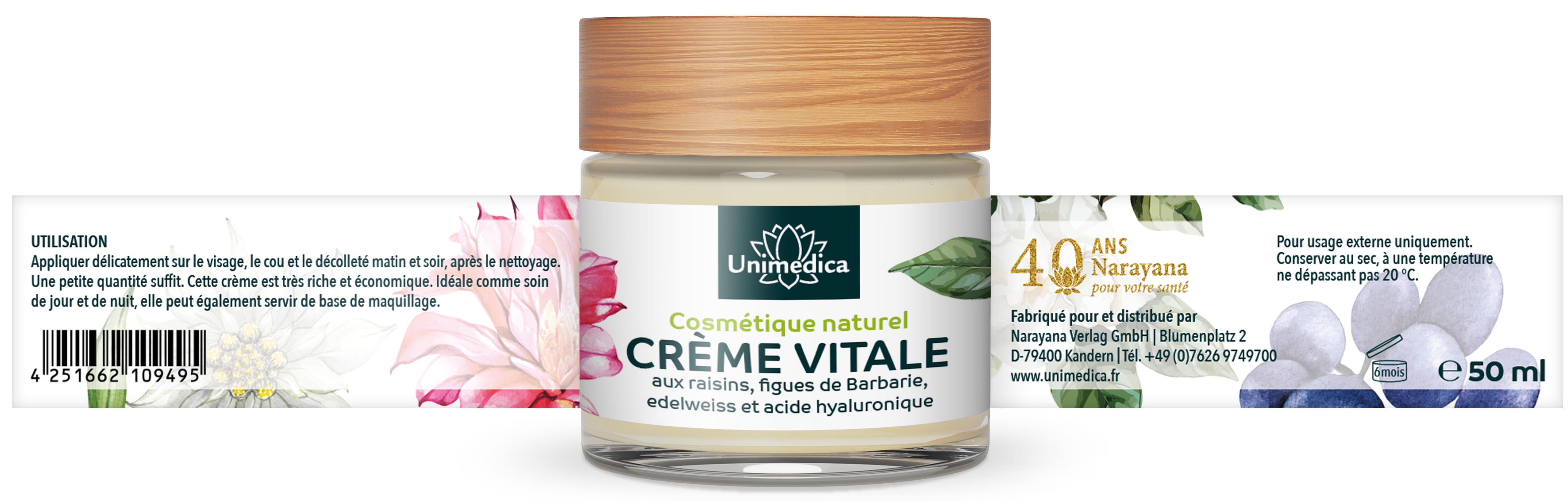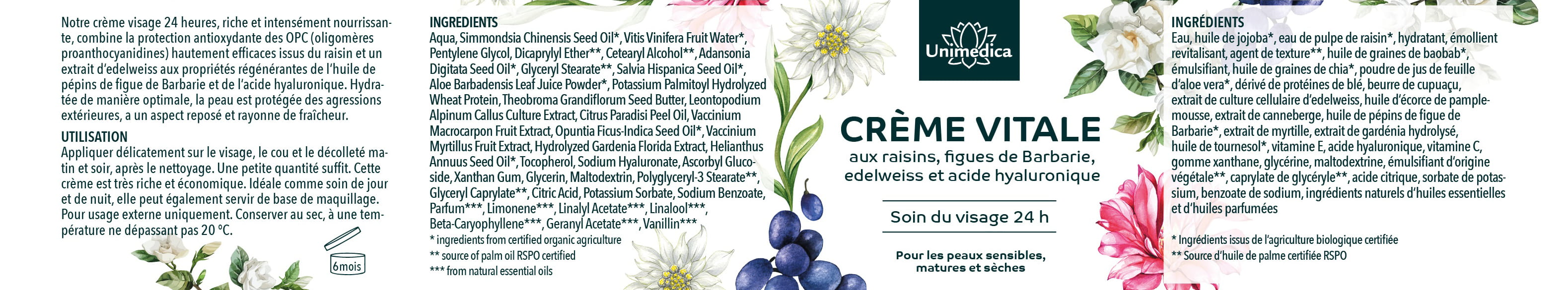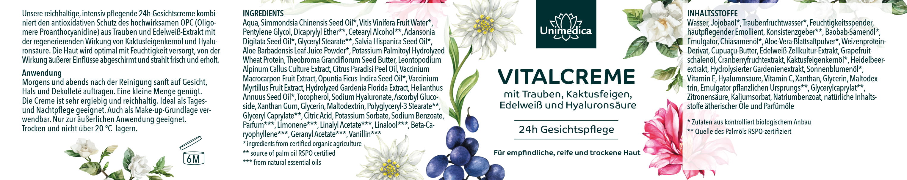Vitalcreme mit Trauben, Kaktusfeigen, Edelweiß und Hyaluronsäure - 24h Gesichtscreme - 50 ml - von Unimedica