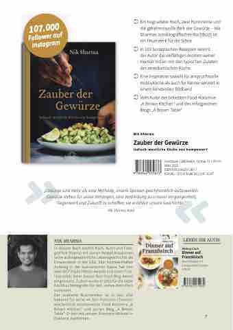 In diesem Buch erzählt Koch, Autor und Foto- graf Nik Sharma mit seinen Rezept-Kreationen seine außergewöhnliche Lebensgeschichte als Einwanderer in die USA. Sein kometenhafter Aufstieg in der kulinarischen Szene hat ihm zwei IACP Digital Media Awards und einen Fina- listenplatz beim Saveur Best Food Blog Award eingebracht. Zudem wurde er 2019 für die beste Kochbuchfotografie für den James-Bart-Preis nominiert.