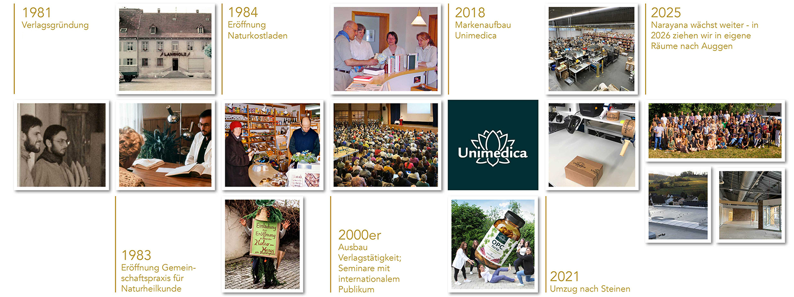 „Nimm deine Gesundheit selbst in die Hand“ – dieses Credo begleitet den Narayana Verlag seit nunmehr 45 Jahren. Was 1981 mit der Initiative zweier Ärzte begann, entwickelte sich im Laufe der Jahrzehnte zu einem vielseitigen Unternehmen. Neben naturheilkundlicher Literatur bietet der Narayana Verlag inzwischen auch unter der Marke „Unimedica“ eine große Palette hochwertiger Nahrungsergänzungsmittel, Superfoods und Naturkosmetikprodukte an. Und wir sind noch lange nicht am Ziel: Für die Zukunft sind unter anderem der Umzug des Verlags nach Auggen und ein neuer Onlineshop geplant. All das wäre ohne Sie – die über 3 Millionen zufriedenen Kunden des Narayana Verlags – nicht möglich. Durch Ihre Treue und Ihr Feedback tragen Sie maßgeblich dazu bei, dass wir unsere Arbeit als inhabergeführter und traditionell eigenständiger Verlag mit Leidenschaft und Engagement fortsetzen können.