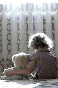 Shutterstock - Depressed little girl hugging teddy bear © ambrozinio