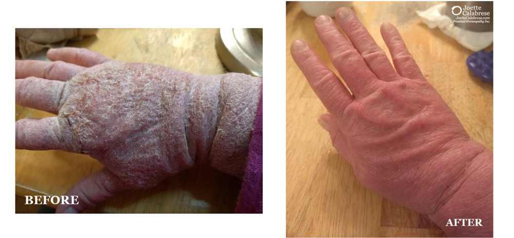 Eine meiner Schülerinnen – sie ist unglaublich – hat mir spontan über ihren eigenen Heilungserfolg berichtet und diesen sogar mit Fotos dokumentiert. Ihren Entzug von topischen Steroiden kann man fast schon als Wunder bezeichnen, wenn man mit der Homöopathie nicht vertraut ist. Die Vorher-Nachher-Fotos demonstrieren anschaulich, welche Kraft unsere homöopathischen Arzneien besitzen!